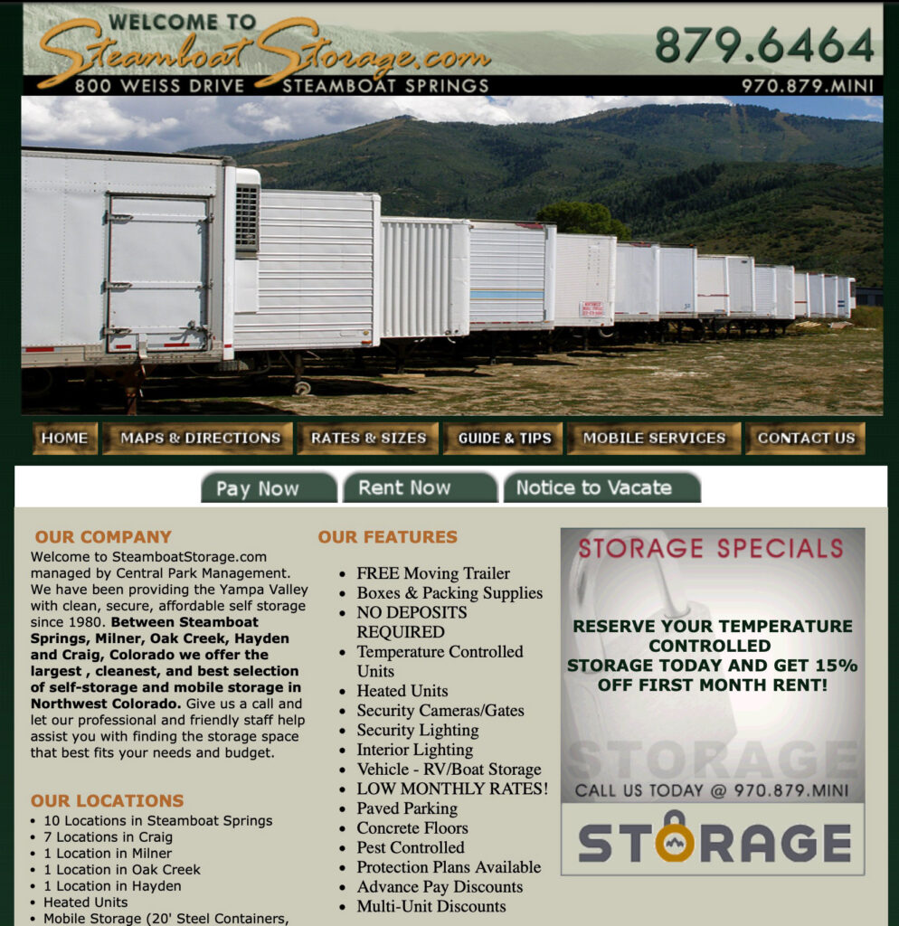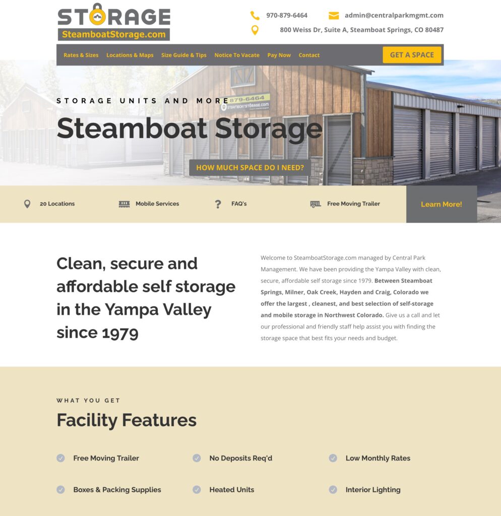 A review of the old website revealed that more relevant information and easier navigation were needed to help the consumer find the type of unit they were looking for. A modern, mobile design, developed by Thin Air on the WordPress platform, gave the website the new look it needed; add to that the ability to help determine the size, location, and an online bill pay option and the new internet presence that Steamboat Storage needed has been accomplished.